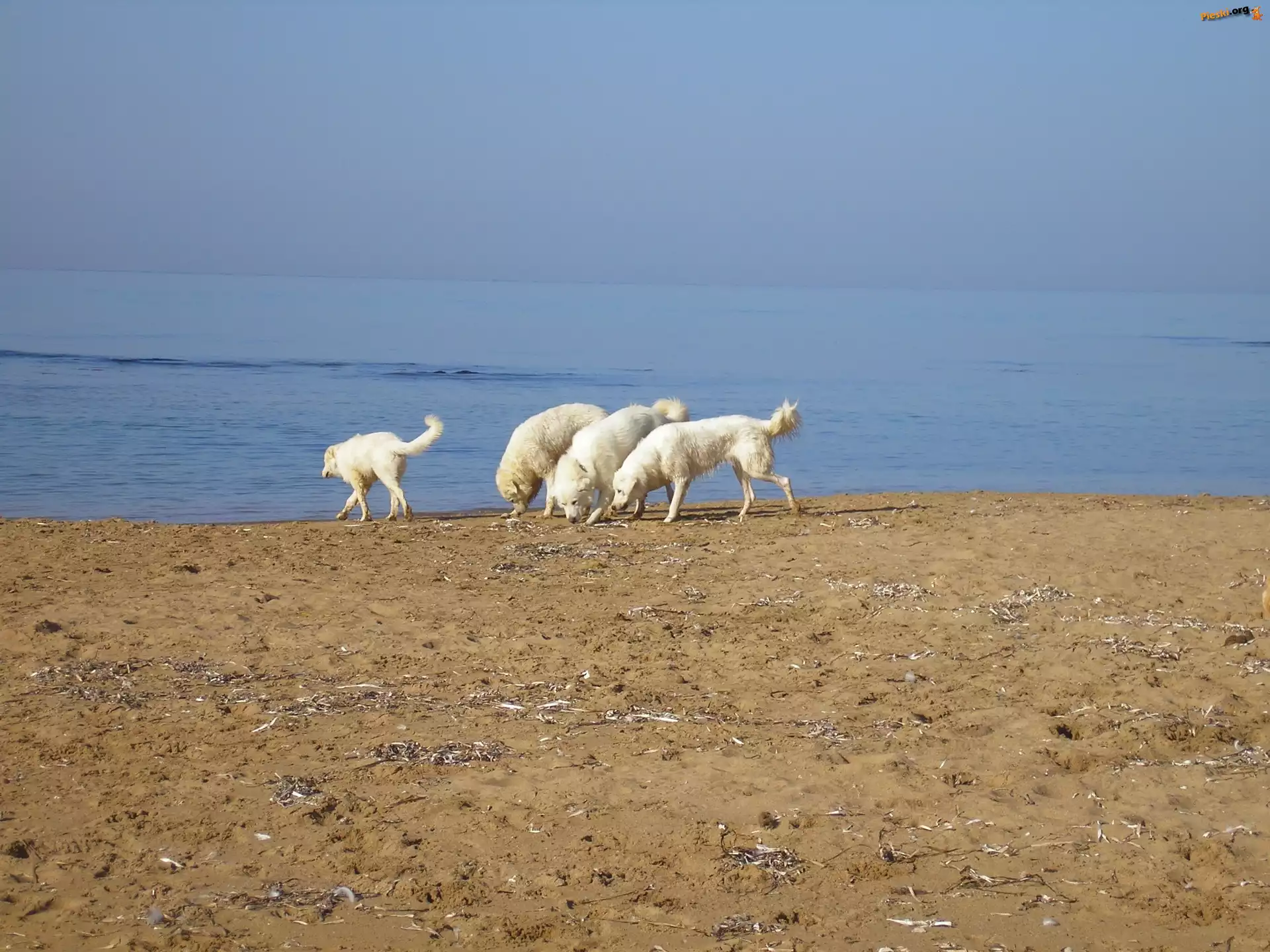 głowa, Maremmano-abruzzese Maremmano-abruzzese, plaża szczeniak, Maremmano-abruzzese czerwone, Maremmano-abruzzese, donica, kwiatki Krawężnik, Biały, Piesek, Maremmano-abruzzese