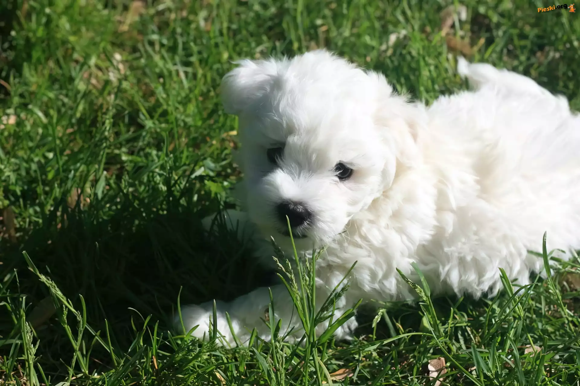 Biały, Coton de Tulear Kokardka, Coton de Tulear, Piesek Szczeniak, Biały, Pies, Coton de Tulear Coton de Tulear, fotel Dwa, Coton de Tulear Trawa, Biały, Piesek, Basen Młoda, Kobieta, Pies Piesek, Coton de Tulear, Łąka