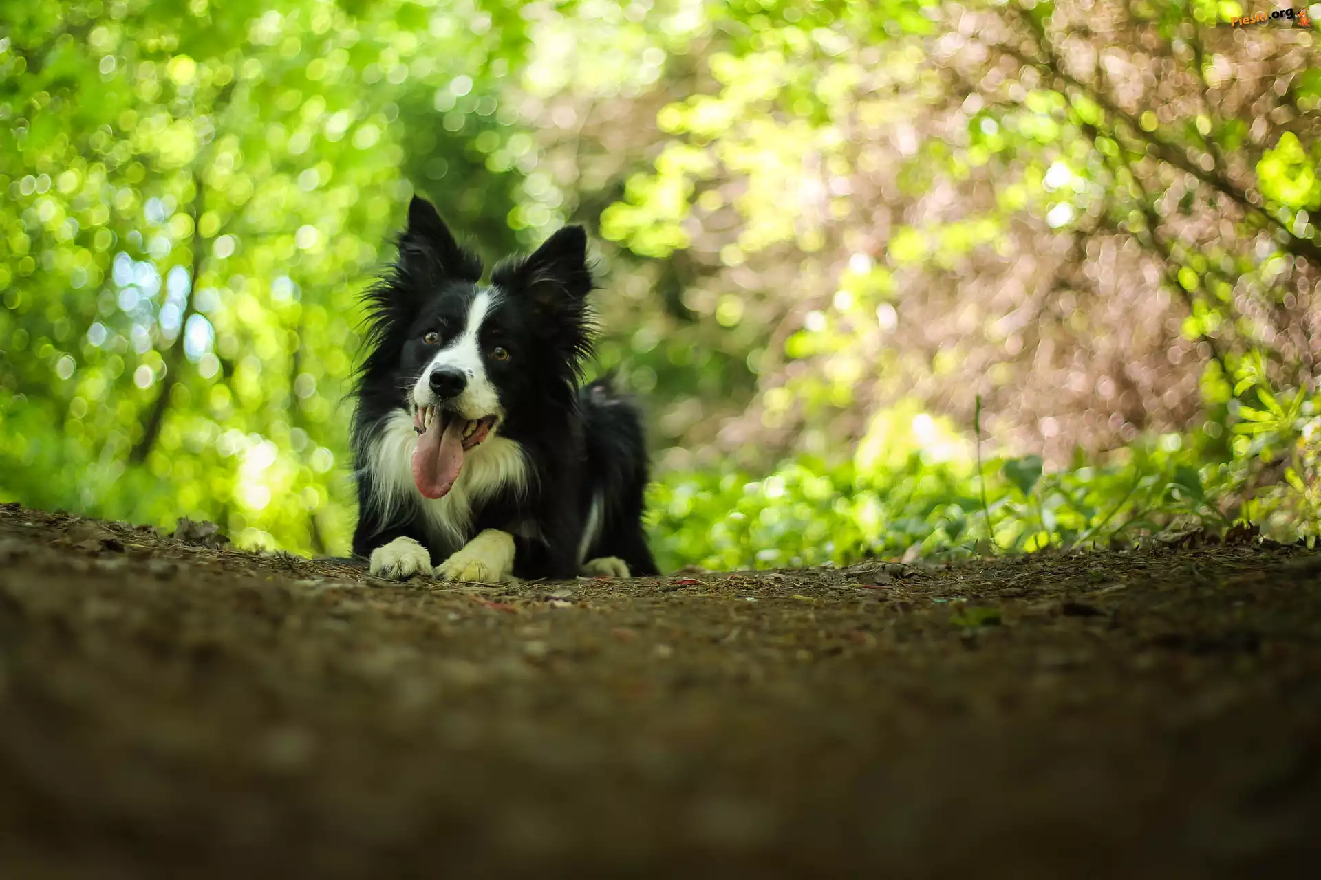 Border collie, Leżący, Pies, Bokeh, Pieski