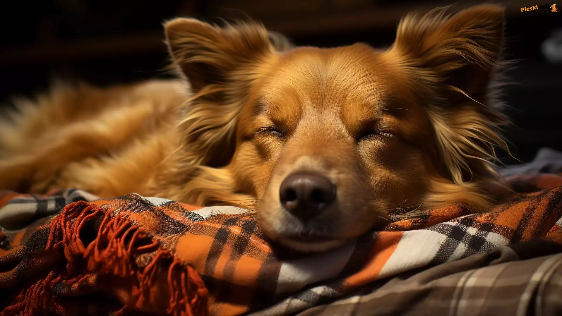 Pies, Grafika AI, Brązowy, Koc, Śpiący, Pieski