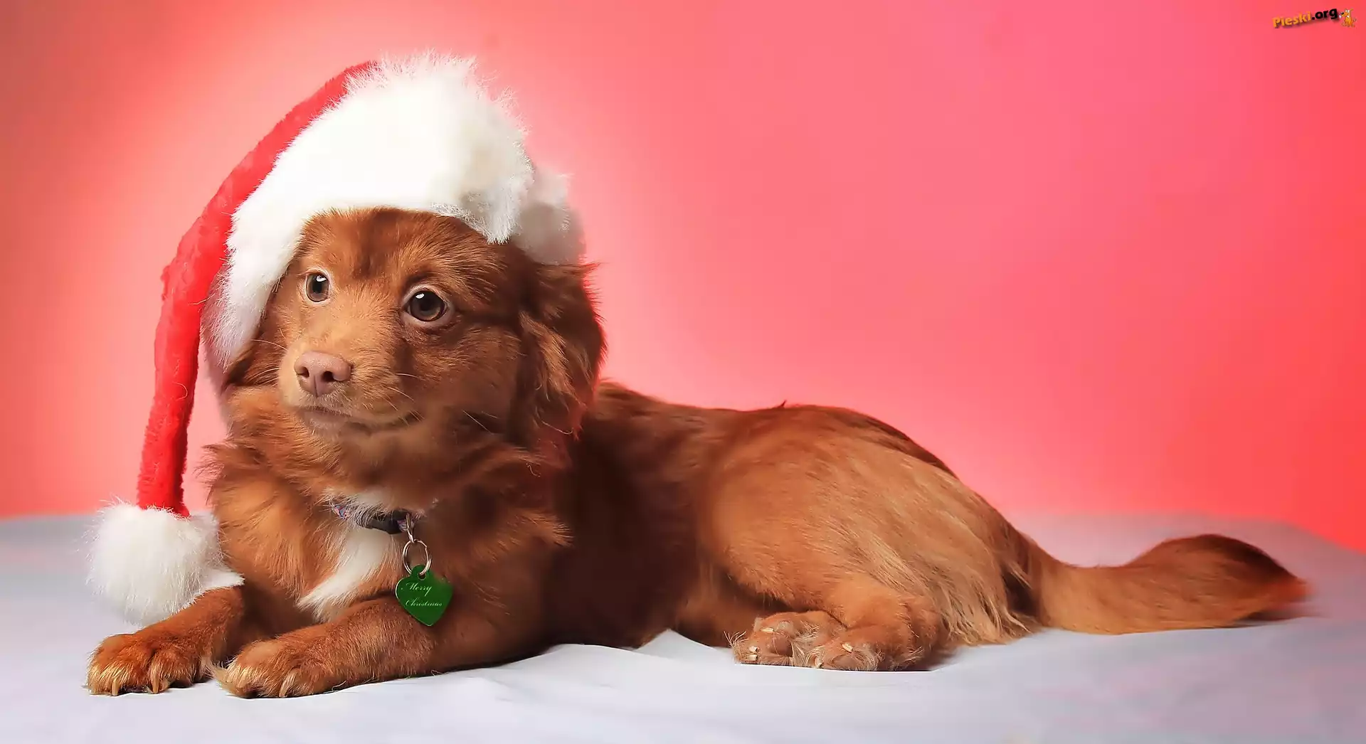 Czapka, Uśmiechnięty, Piesek, Mikołaja