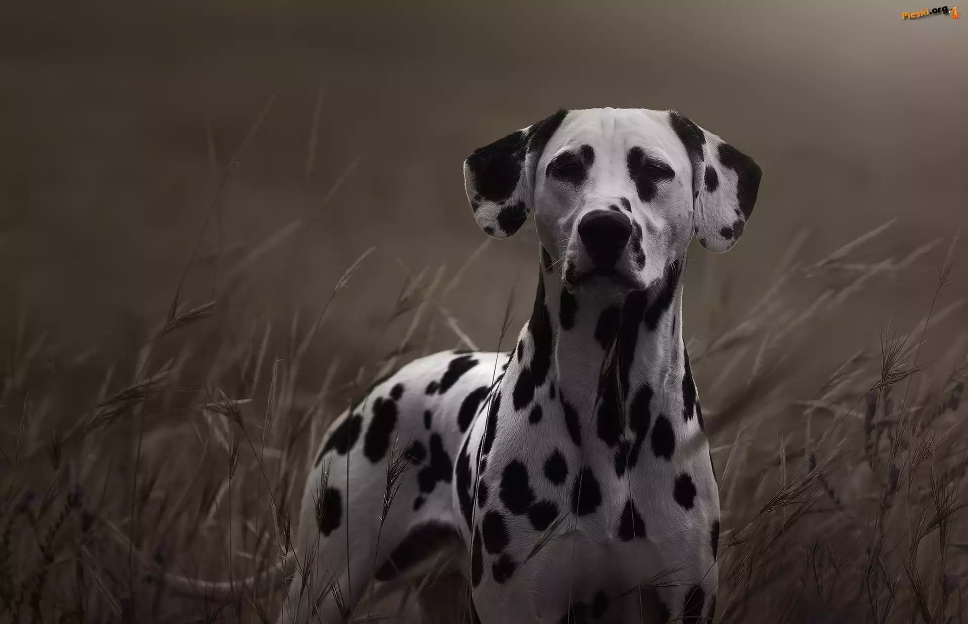 Pies, Dalmatyńczyk, Trawa, Pieski