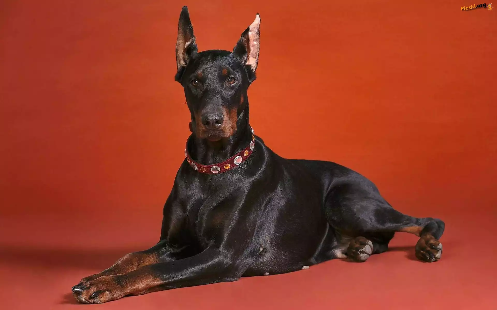 Czarne, Doberman, Pies, Światła, Tło Dobermany, Liście, Park, Owczarek Niemiecki, Poranny spacer, Jesień Doberman, Obroża Pies, Doberman Parasol, Łąka, Pies, Drzewo, Chmury, Dziewczyna, Doberman Doberman Czarne, Pies, Doberman, Tło Doberman, Pysk Szalik, Pies, Doberman, Kładka