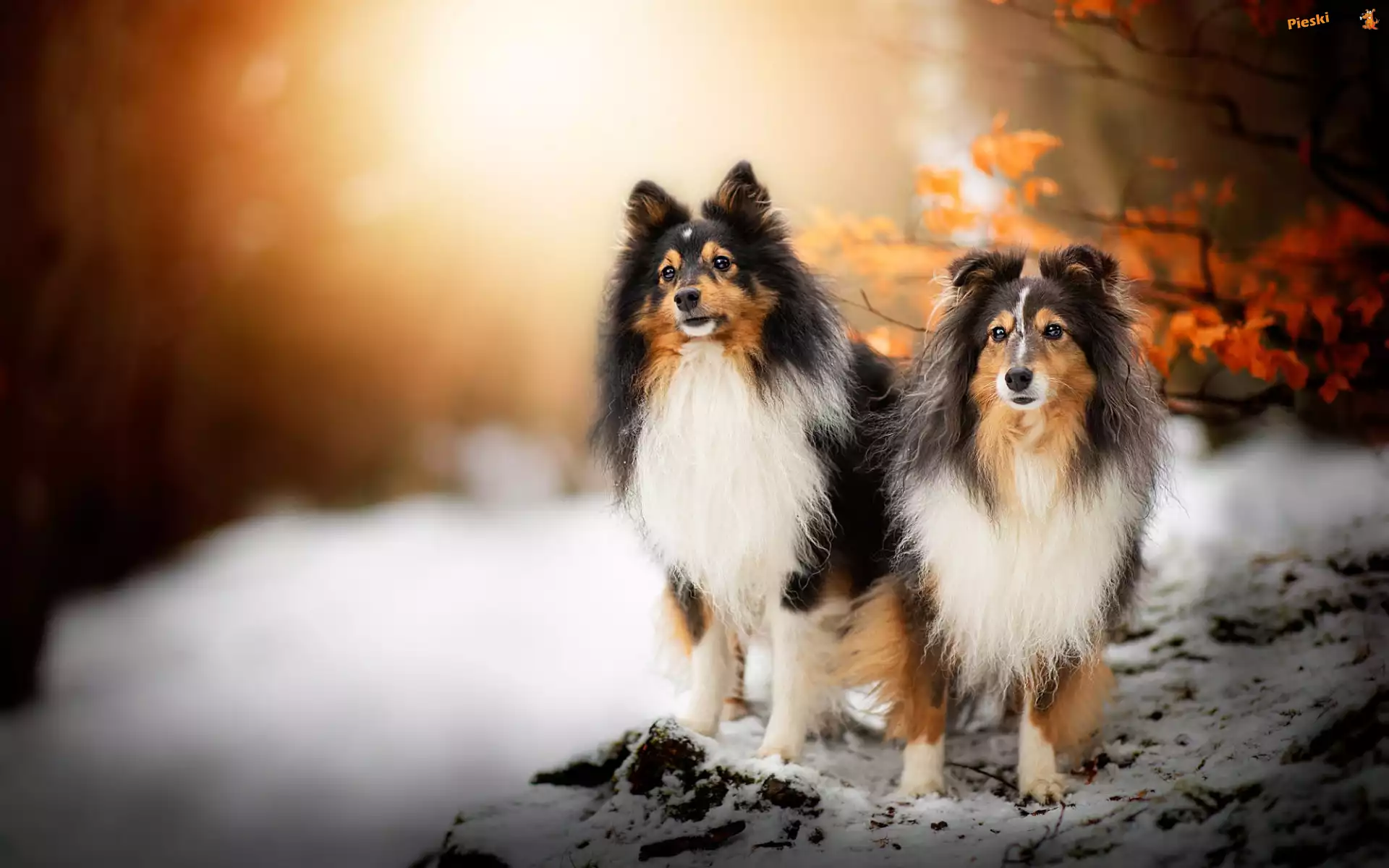 Psy, Owczarki szetlandzkie, Dwa, Pieski