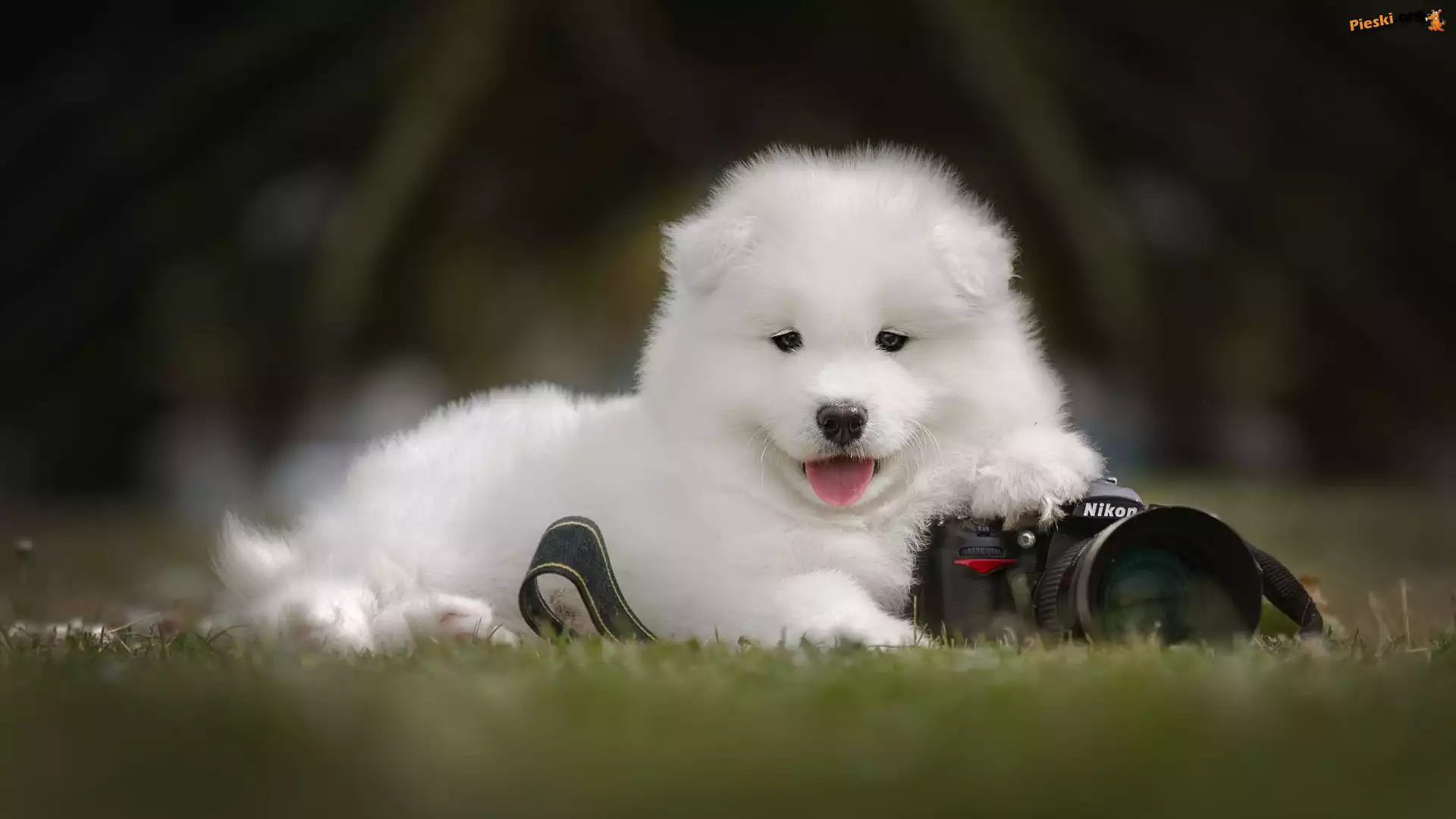 Aparat fotograficzny, Szczeniak, Pies, Samojed