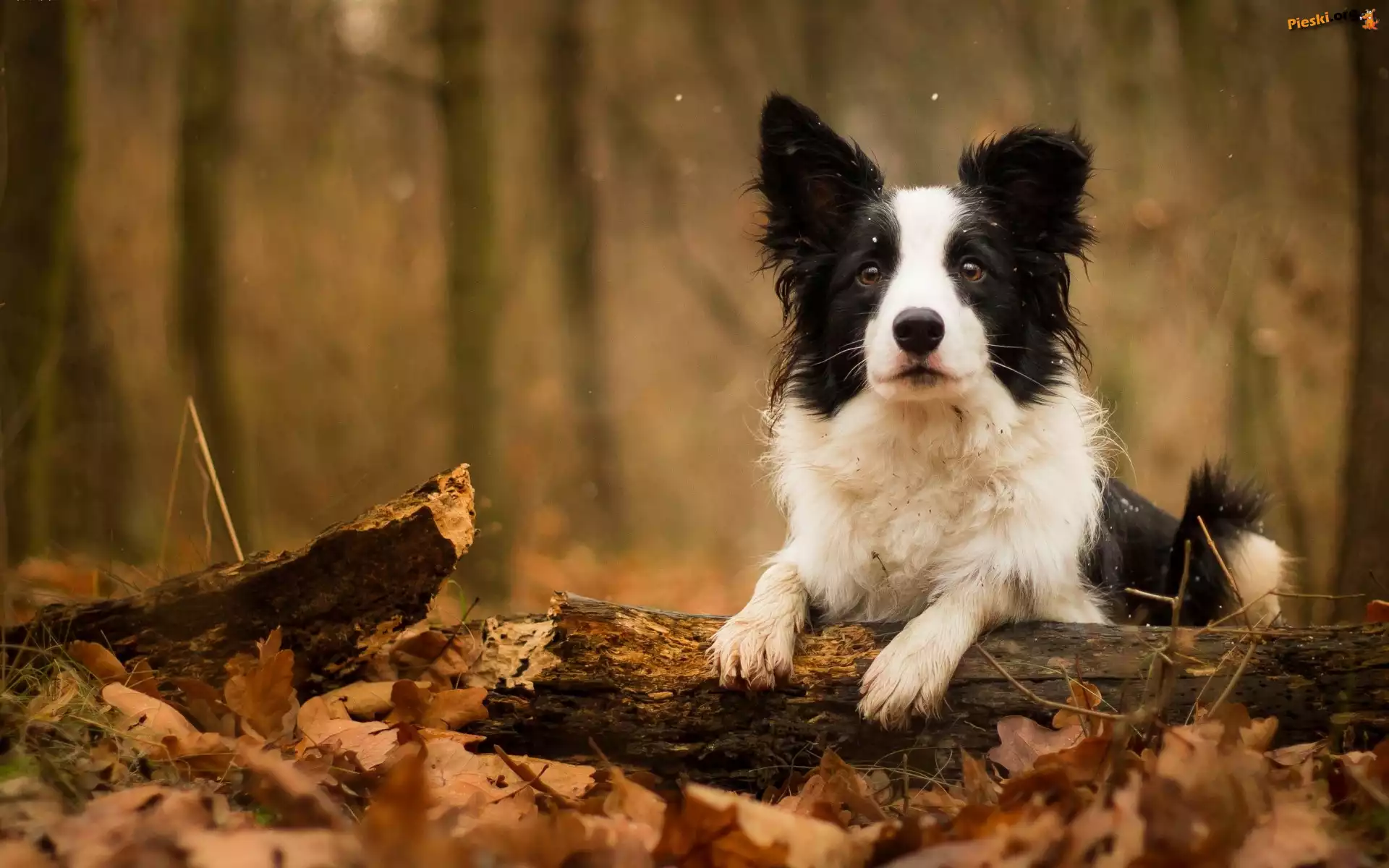 Gałąź, Border collie, Konar, Liście, Pieski