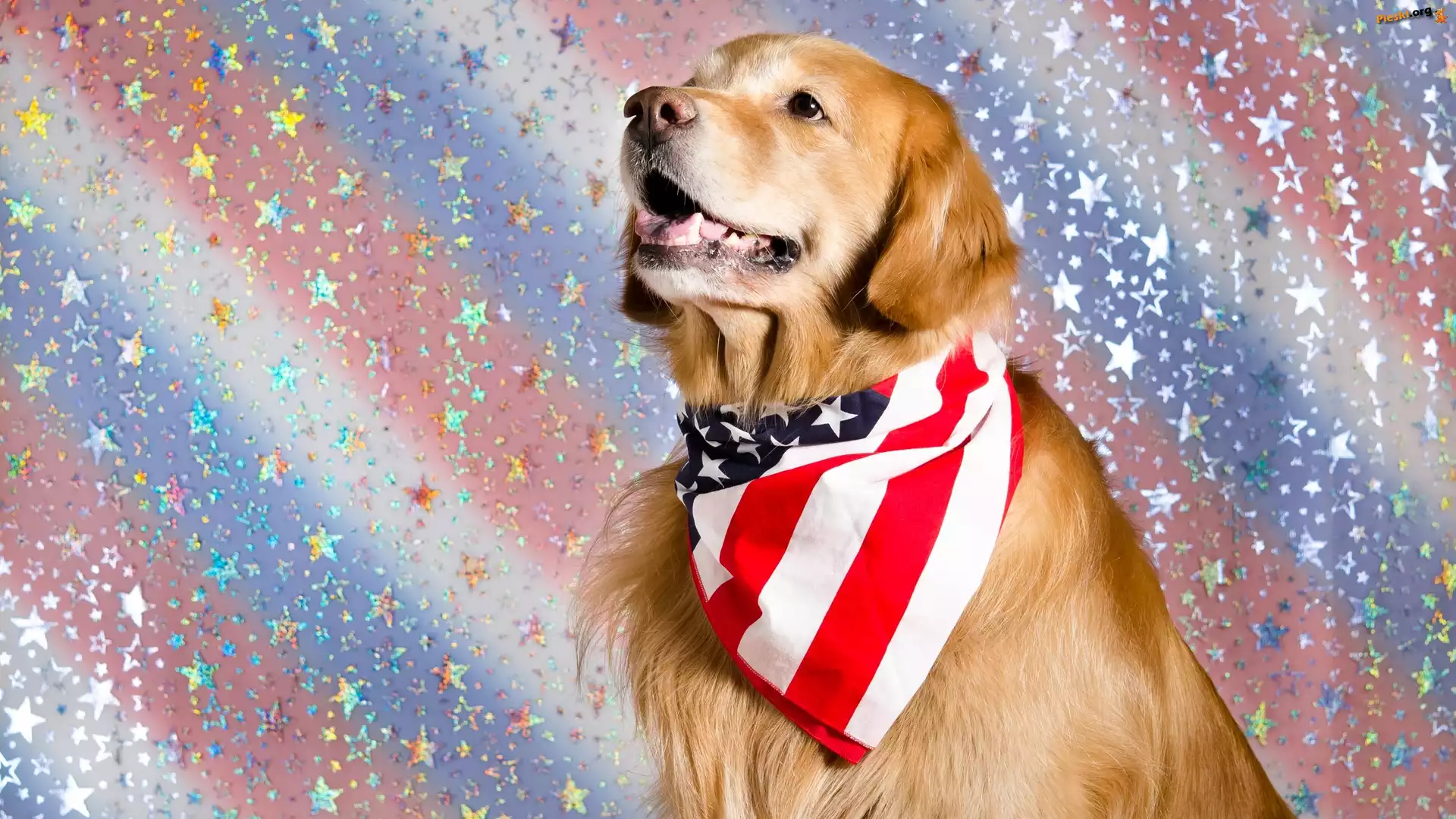 Chusta, Golden retriever, Pies, Mordka, Kolorowe tło