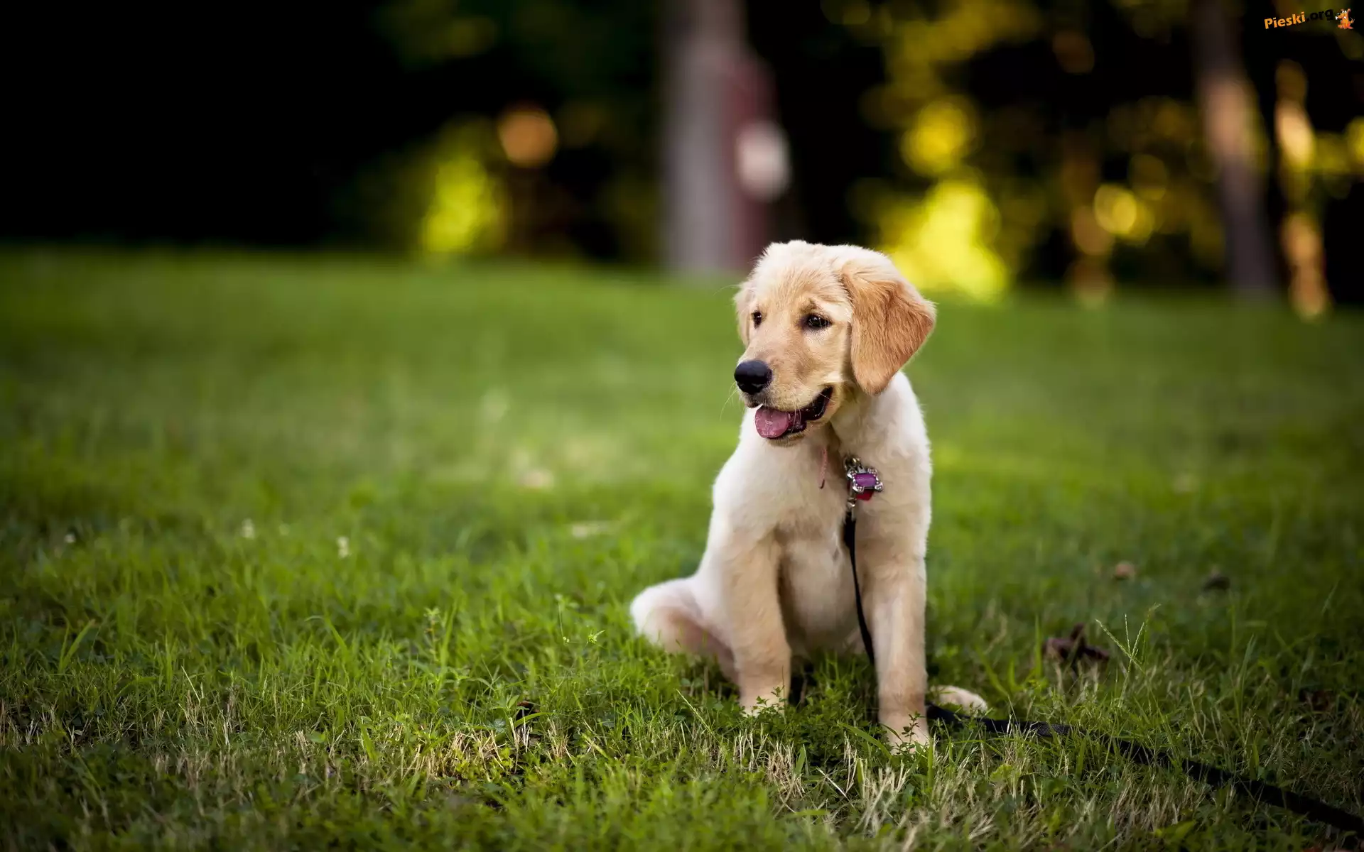 Golden Retriever, Szczeniak, Smycz