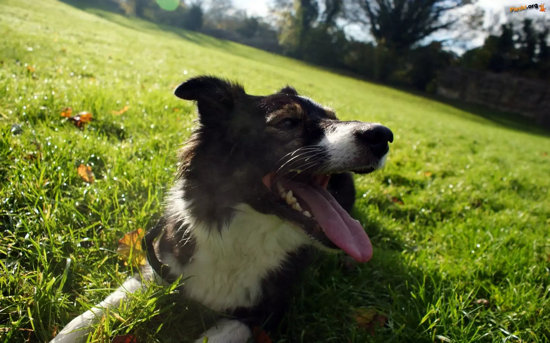 Łąka, Wystający, Pies, Język, Drzewa, Pieski
