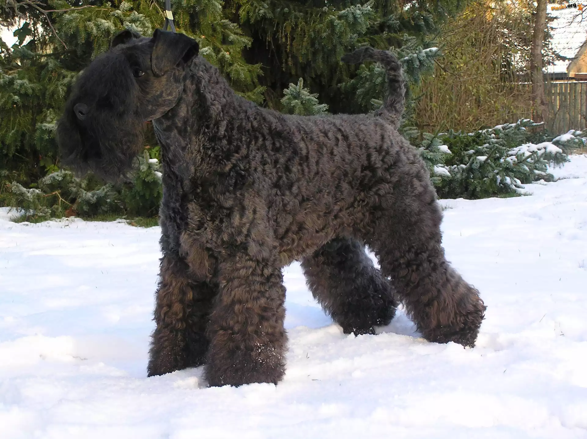 trzy, Kerry blue terrier Kerry blue terrier, śnieg Kerry blue terrier