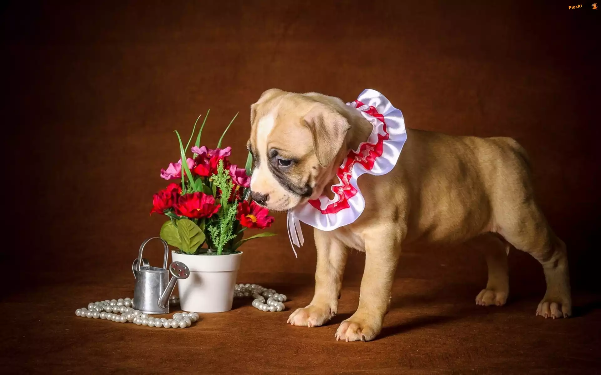 Kwiaty, Pies, Szczeniak, Podlewaczka