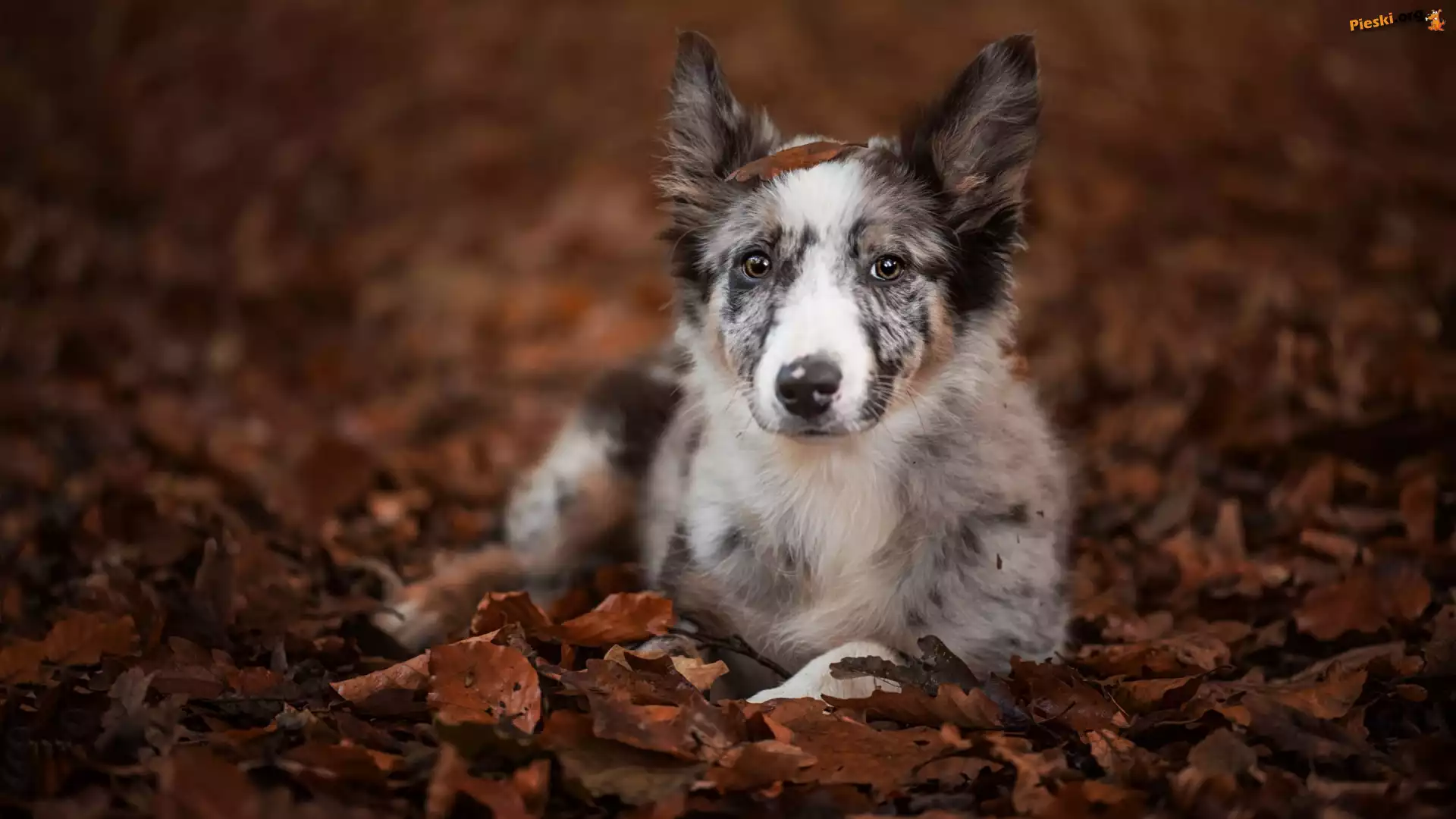 Leżący, Border collie, Liście