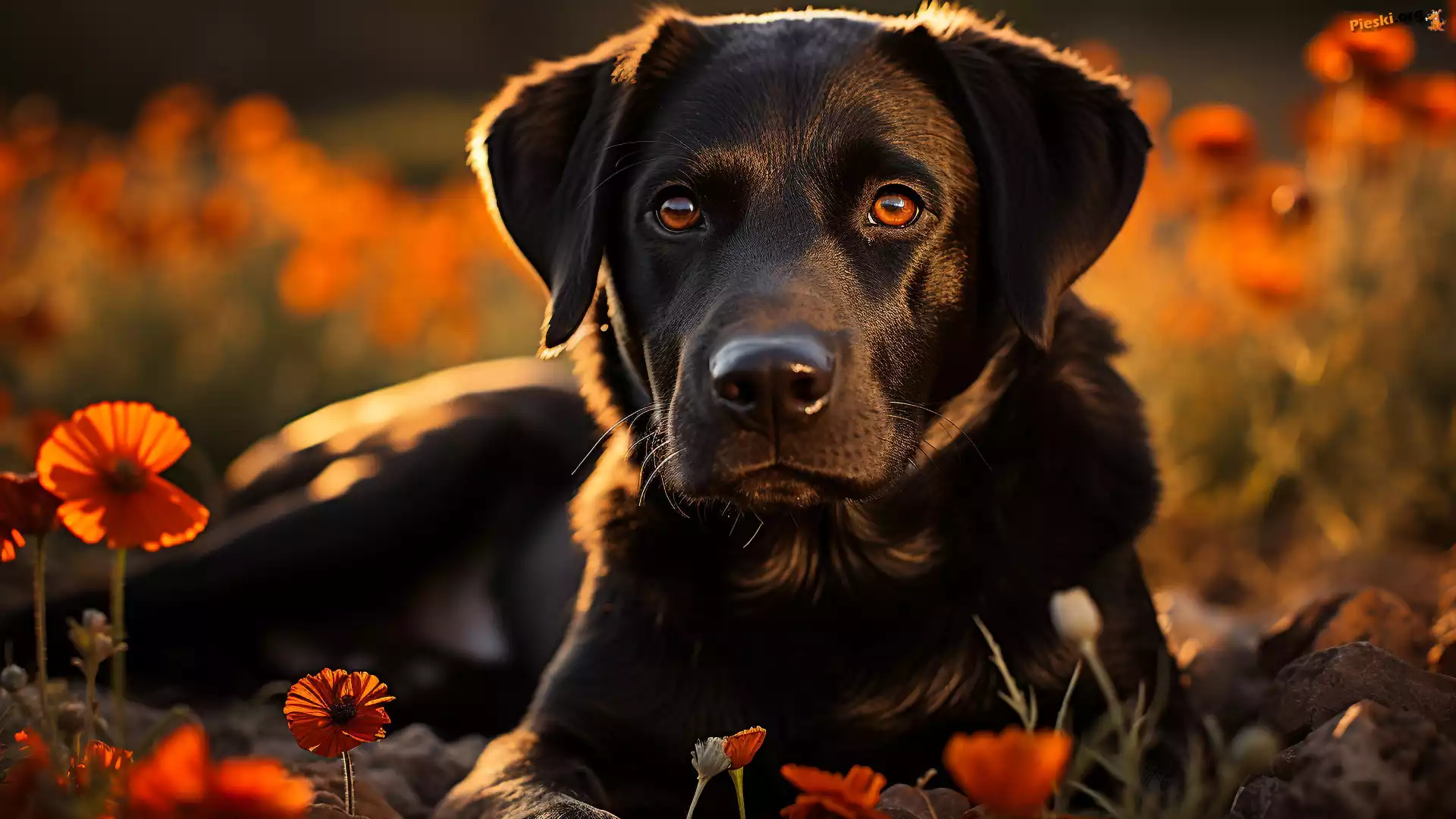 Mordka, Maki, Pies, Kwiaty, Czarny, Pieski