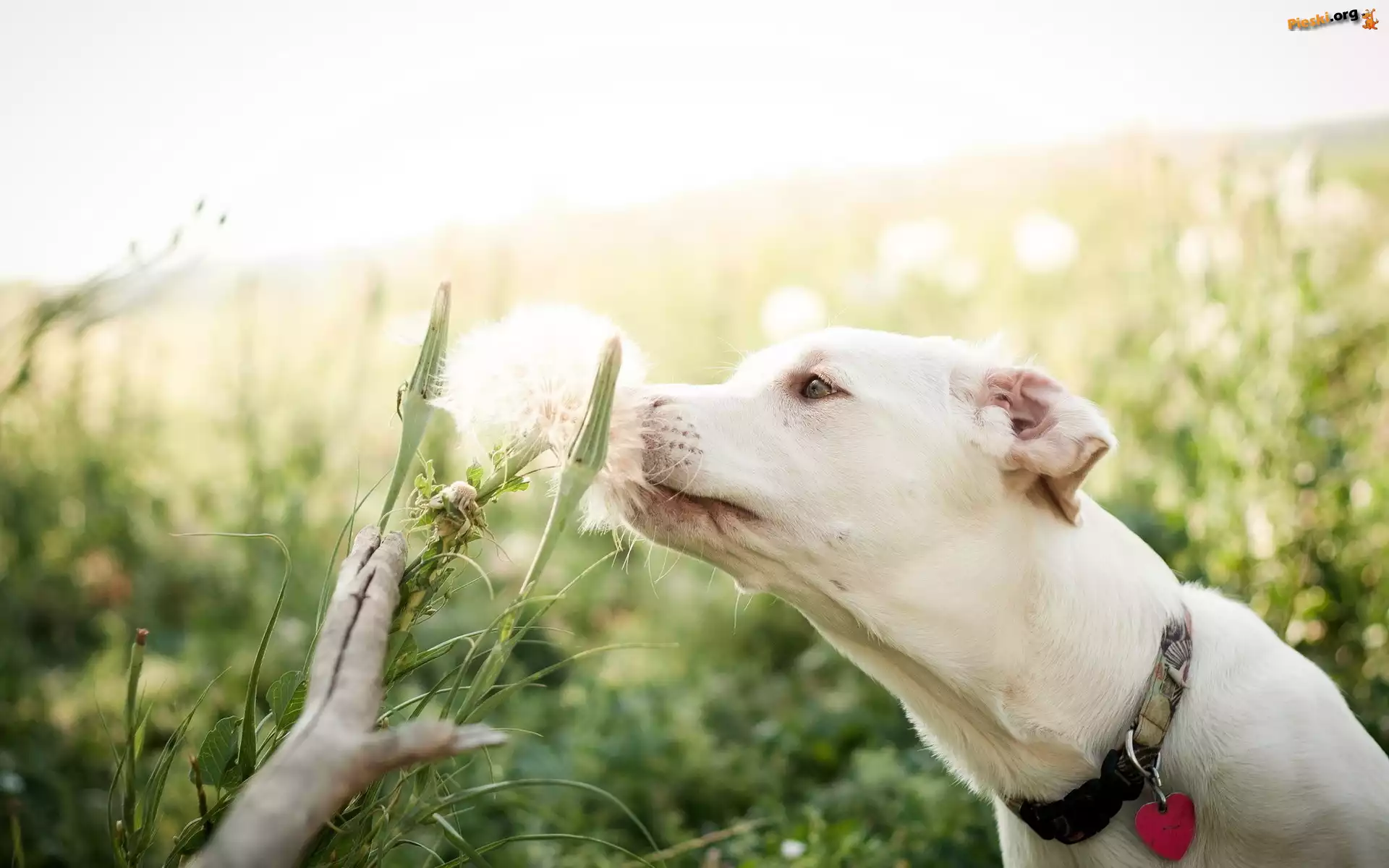 Obroża, Biały, Pies, Dmuchawiec, Pieski