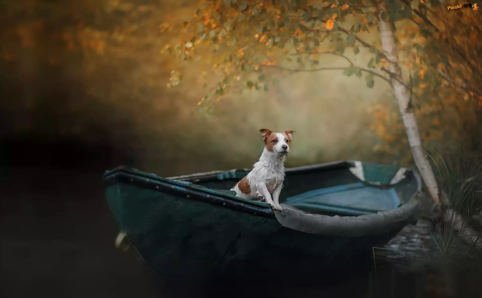 Łódka, Pies, Jack Russell terrier, Brzoza, Pieski
