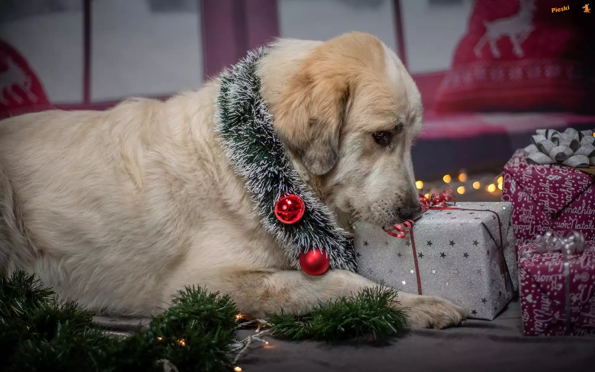 Świąteczne, Pies, Ozdoby, Prezenty, Pieski