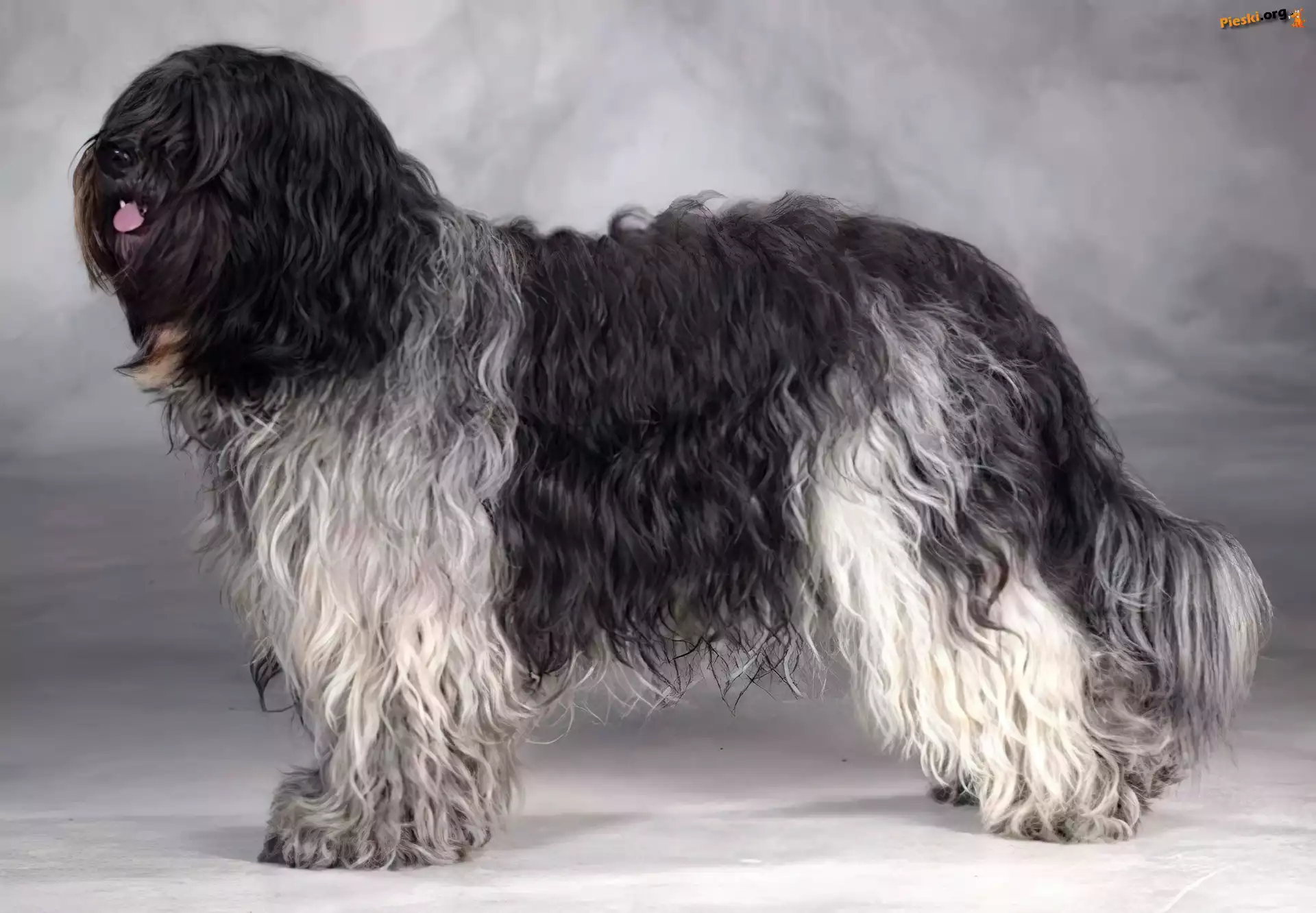 Dwa, szaroniebieskie, Schapendoesy Schapendoes, białe, kwiatki Pasterski, Schapendoes