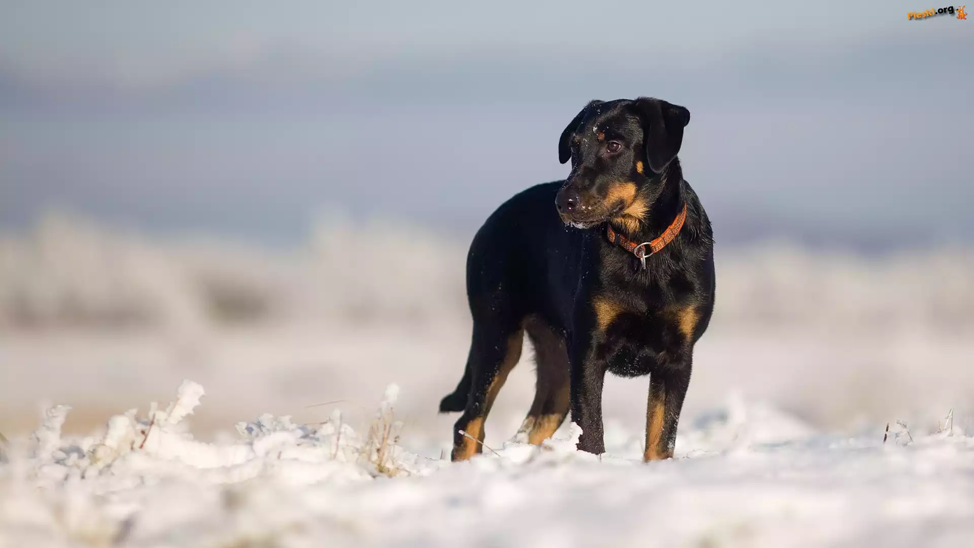 Pies, Owczarek francuski Beauceron, Śnieg, Pieski