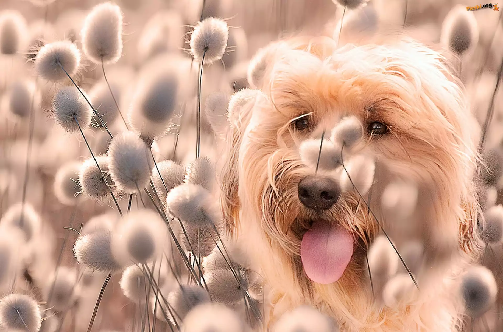 Biały, Pies, Rośliny, Pieski