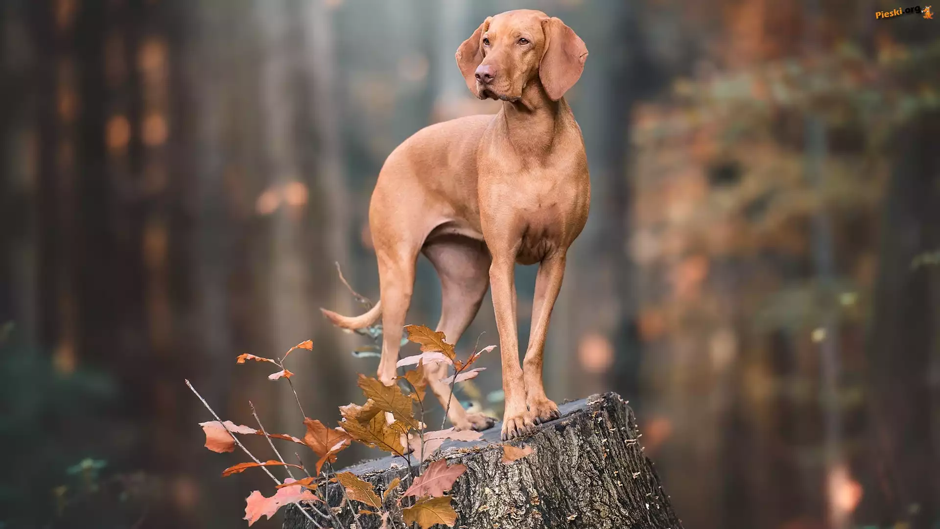 Pieniek, Pies, Brązowy, Wyżeł węgierski krótkowłosy, Liście, Pieski