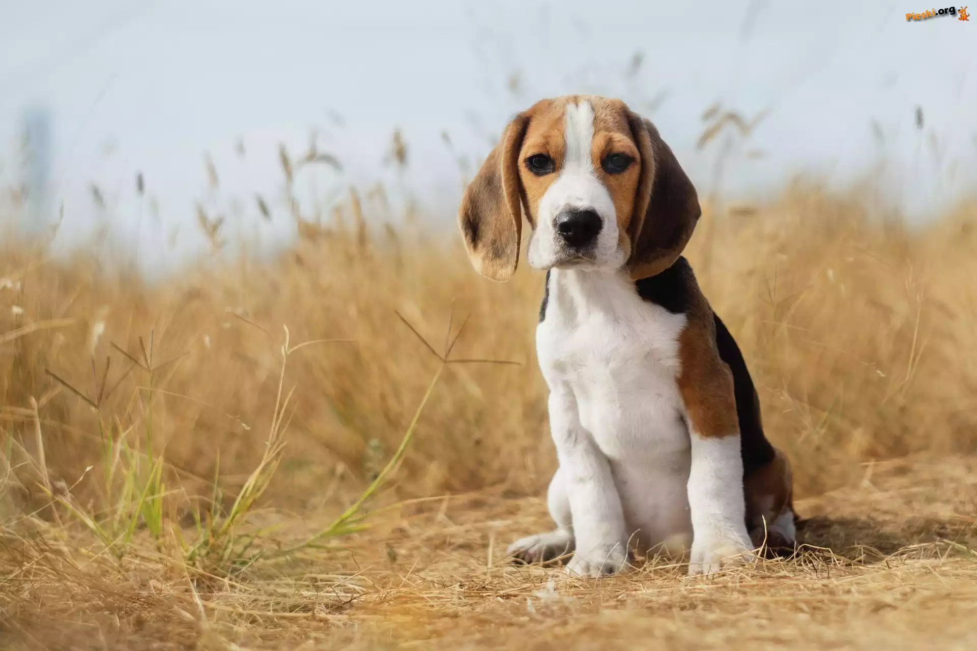 Pies, Siedzący, Szczeniak, Beagle, Pieski