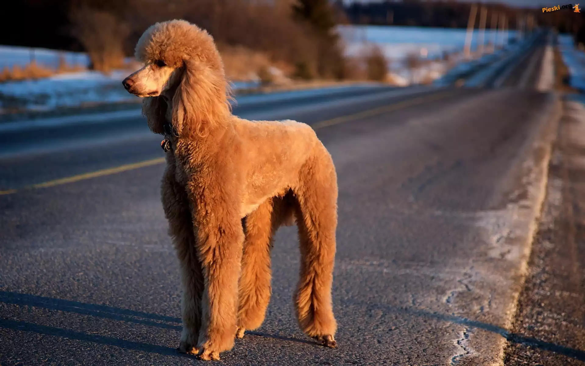 Duży, Pudel, Droga biały, Pudel duży Pudel, Czerwone, Róże