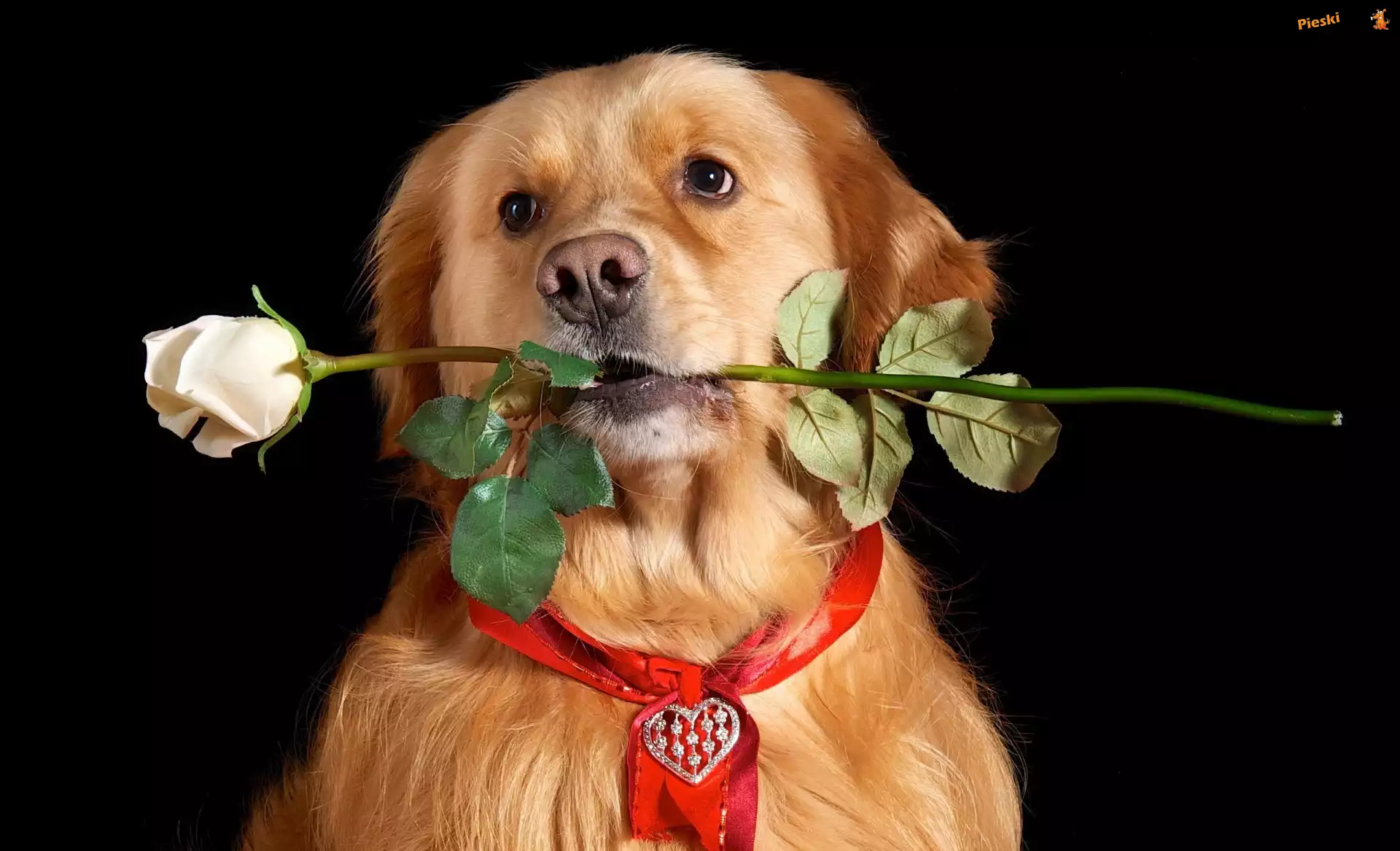 Serduszko, Biała, Pies, Róża, Walentynki, Pieski