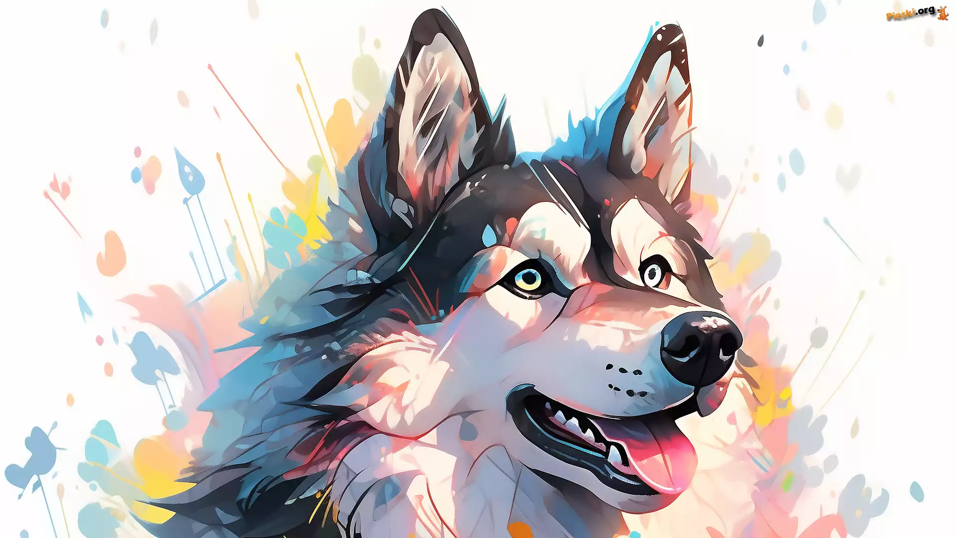 Farba, Siberian husky, Grafika, Pies, Pieski