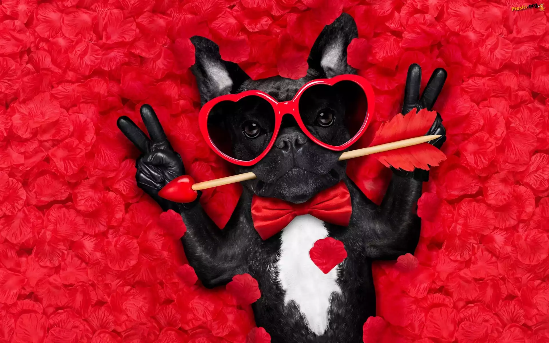 Pies, Strzała, Okulary, Buldog francuski, Śmieszne, Płatki, Pieski