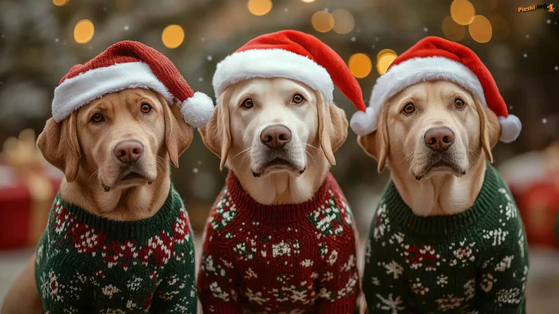 Czapki, Swetry, Trzy, Mikołaja, Psy, Pieski