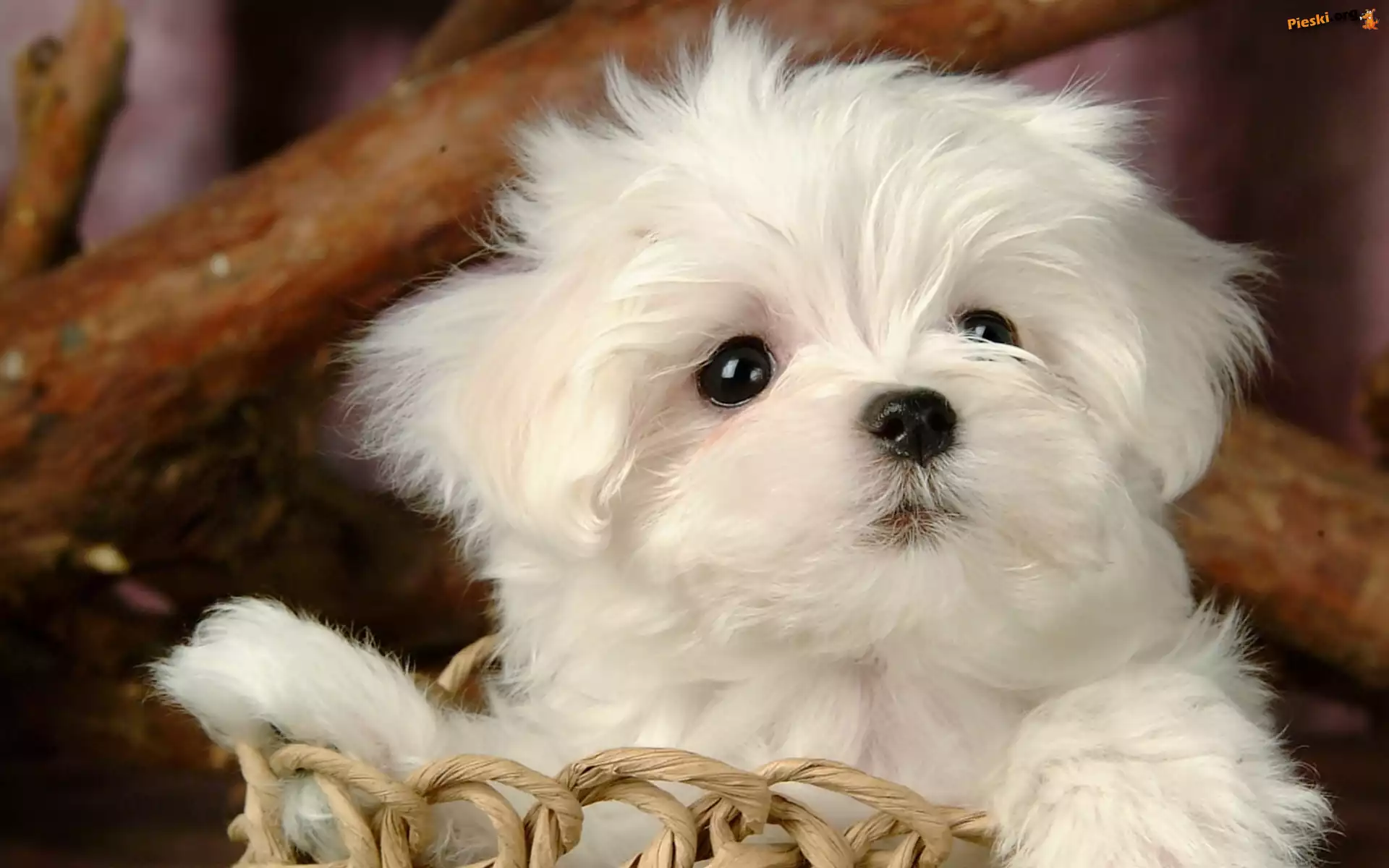 Szczeniaczek, Mały, Biały, Koszyk, Pieski