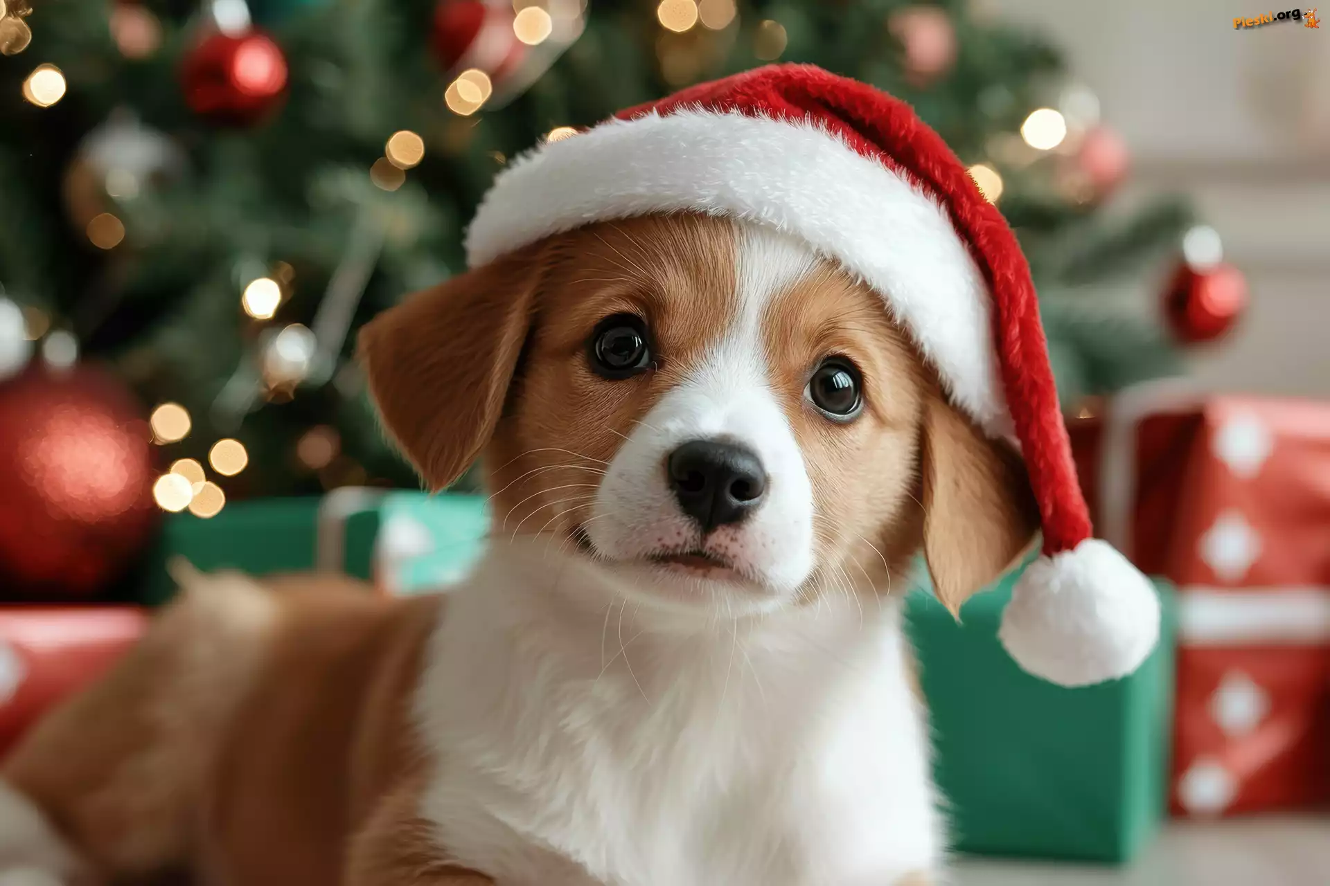 Mikołaja, Czapka, Pies, Szczeniak, Pieski