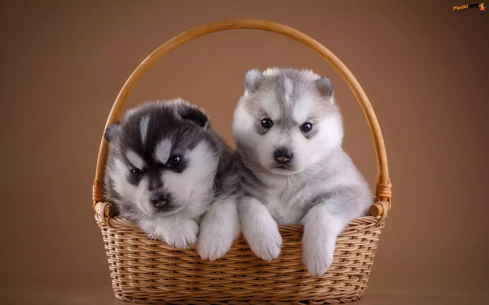 Szczeniaki, Siberian husky, Psy, Koszyk, Słodkie