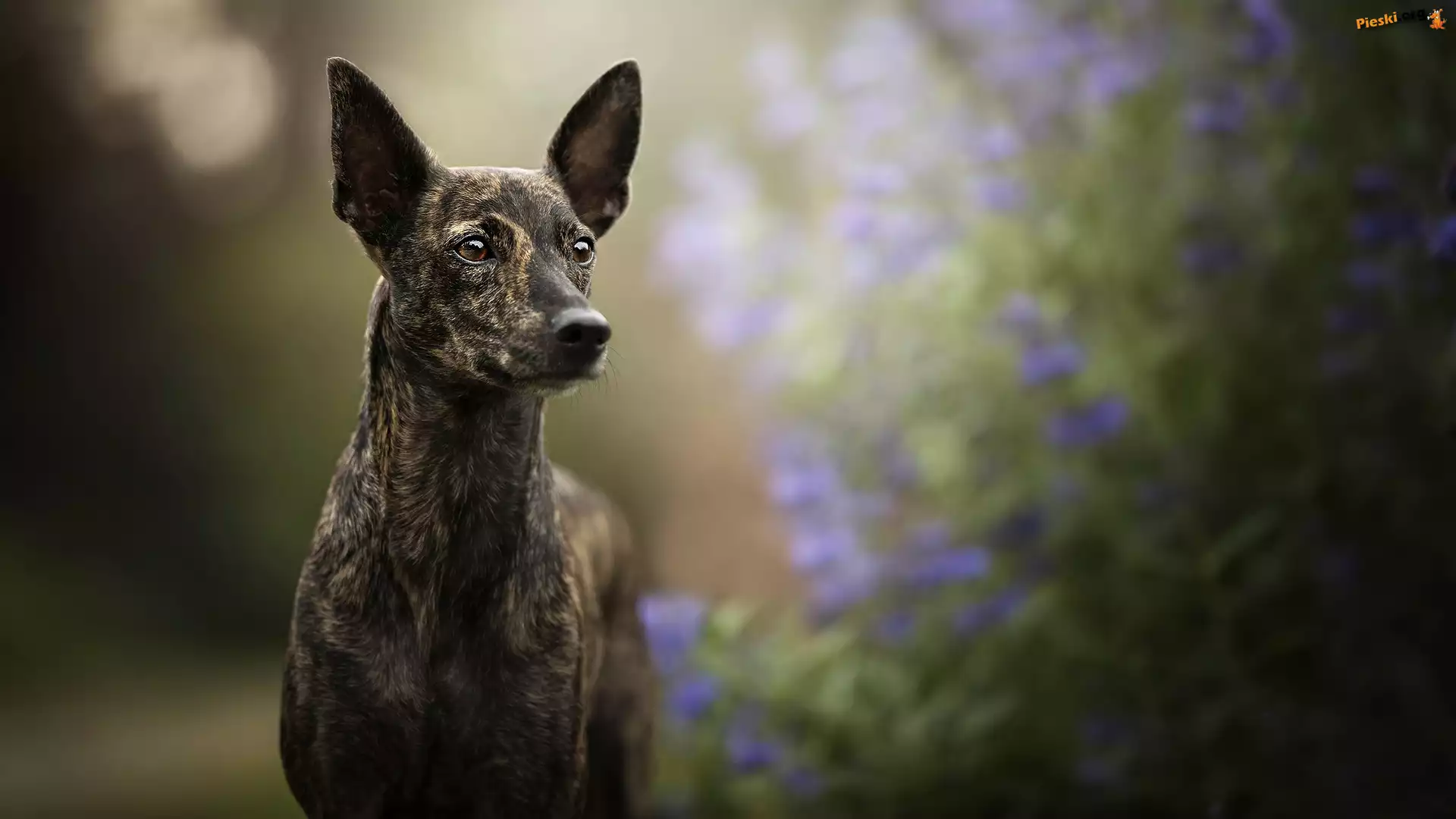 Whippet, zielone, liście Whippet, zielona, trawa Whippet, różowe, ubranko Pies, Whippet, Mordka